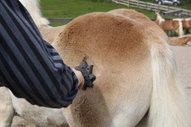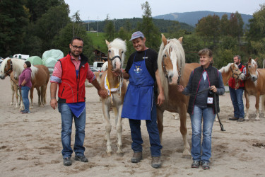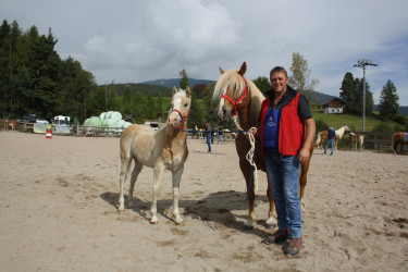 Fein herausgeputzt warten die Fohlen des laufenden Jahres im Herbst immer auf ihr erstes Brandzeichen, das ein Edelweiß darstellt. Die Fohlen und die Mutterstuten stellen in einem Freilauf den Züchtervertretern ihre Bewegungen in den einzelnen Gangarten vor. In Augenschein genommen werden auch die Fellfarbe, die Blesse oder der Stern, der Hals. Das Fohlen nimmt also schon in einem Alter von 6-9 Monaten an der Miss- bzw. Mrswahl teil. Im Anschluß bekommen sie dann endlich den Fohlenbrand. Am Ende werden die schönsten Hengst- und Stutfohlen ausgesucht und natürlich gekürt.