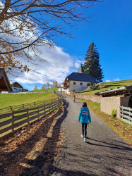 Eine beliebte Route startet in Pemmern, führt über den Rosswagen und vorbei an der kleinen Kirche zur Heimsuchung Marias. Dort kann man auf einer Bank in der Sonne sitzen und die Ruhe genießen. Die Umgebung, geprägt von traditionellen Bauernhöfen, ist ideal für eine Wanderung mit der Familie und gewährt weite Ausblicke auf die umliegenden Berge und Täler.. Besonders schön ist der Anblick der jungen Lärchen am Wegrand, die mit Baumbart und Flechten bewachsen sind.