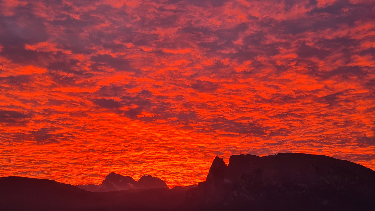 Wenn der Tag sich dem Ende neigt, hält der Winter am Ritten oft eine Überraschung bereit: Bei klarem Wetter erleben Sie magische Momente, in denen der Himmel und die Dolomitengipfel in feinen Pastelltönen oder einem tiefen Rot erglühen. Kein Filter der Welt kann dieses Alpenglühen nachahmen.