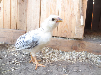 Unter Anleitung der Glucke werden Kücken im Auslauf bald selbst Futter suchen. In ungefähr 3 Wochen kann dann langsam auf mittelfeinen Getreidebruch umgestellt werden.
