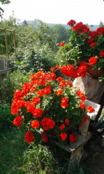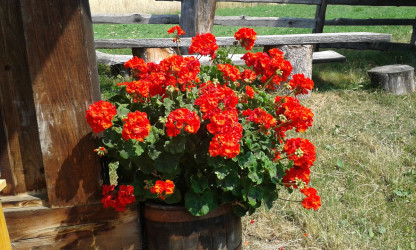 Vom Frühling bis in den Herbst, solange es draußen nicht friert, schmücken diese Geranien Balkone und Höfe und erfreuen Einheimische und Gäste. Ohne Blumen wirken gerade Bauernhöfe wie verlassen, man sagt: „da fehlt die Seele des Hofes“.