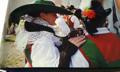Bei der Rittner Festtagstracht tragen Männer am Hut eine „Brennende Liab“und die Rittner Frauentracht wird am Knoten des Schurzbandes auch mit dieser Blume noch geschmückt.