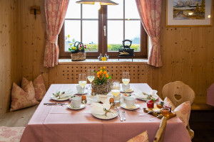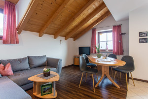 Bei uns gibt es 4 gemütliche Ferienwohnungen mit sonnigem Balkon oder Terrasse, dazu ein herrlicher Blick auf die Dolomiten. Je nach Wunsch können Sie sich morgens in unserer Bauernstube bei einem herzhaften Frühstück oder abends mit typischen hausgemachten Köstlichkeiten verwöhnen lassen und mit neuer Energie in den nächsten Tag starten. 200 m von unseren Hof befindet sich eine Bushaltestelle, von dort aus können Sie auch einen Tag autofrei genießen.