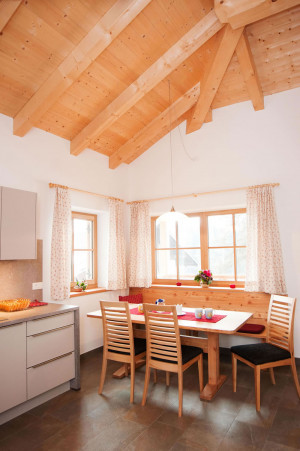 In un letto al legno di pino cembro si dorme meglio. I nostri appartamenti offrono tanto spazio e tempo per la Sua ricreazione individuale e sono adatti per persone allergiche. Le attrezzature al legno di pino di cembro, il fuoco nella stufa caminetto e tanti altri dettagli creano un atmosfera intima e confortevole. Balconi esposti a sud, posti soleggiati al esterno ed un parco giochi naturale perfezionano l'offerta del nostro agriturismo.